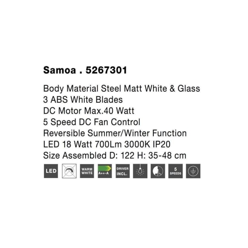 677 KčStropní ventilátor s LED světlem NOVA LUCE SAMOA 18W 3000K 5267301