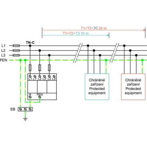 Svodiče impulzních proudů a rázového přepětí typu T1+T2+T3. Výrobky jsou složeny z varistorů s velkou svodovou schopností. V provedení 1+1 a 3+1 a HLSA25G jsou navíc v kombinaci s bleskojistkou, která zajišťuje nulový průsakový proud vodičem PE. Vhodné pro objekty s uvažovanou hladinou ochrany LPL I a LPL II. Instalují se na rozhraní zón LPZ 0 – LPZ 1 a vyšší, co nejblíže vstupu kabelového vedení do objektu – hlavních rozvaděčů. V případě instalace svodiče označeného T1+T2+T3 v hlavním rozvaděči je nezbytné instalovat také svodiče přepětí T2 a T3 v podružných rozvaděčích. Pokud výrobek obsahuje dvě svorky PE (resp. PEN), nesmí být použity jako můstek PE (PEN). Označení S specifikuje provedení s dálkovou signalizací. Instaluje se dle norem: ČSN EN 62305 ed. 2, ČSN 33 2000-5-534 ed. 2, ČSN CLC/TS 61643-12.