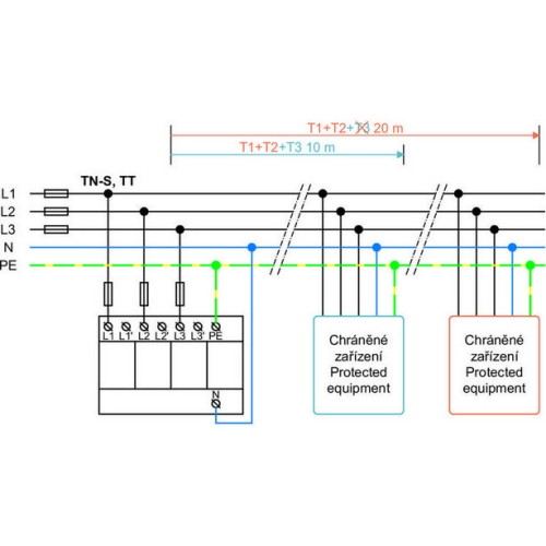 Svodiče impulzních proudů a rázového přepětí typu T1+T2+T3. Výrobky jsou složeny z varistorů s velkou svodovou schopností. V provedení 1+1 a 3+1 a HLSA25G jsou navíc v kombinaci s bleskojistkou, která zajišťuje nulový průsakový proud vodičem PE. Vhodné pro objekty s uvažovanou hladinou ochrany LPL I a LPL II. Instalují se na rozhraní zón LPZ 0 – LPZ 1 a vyšší, co nejblíže vstupu kabelového vedení do objektu – hlavních rozvaděčů. V případě instalace svodiče označeného T1+T2+T3 v hlavním rozvaděči je nezbytné instalovat také svodiče přepětí T2 a T3 v podružných rozvaděčích. Pokud výrobek obsahuje dvě svorky PE (resp. PEN), nesmí být použity jako můstek PE (PEN). Označení S specifikuje provedení s dálkovou signalizací. Instaluje se dle norem: ČSN EN 62305 ed. 2, ČSN 33 2000-5-534 ed. 2, ČSN CLC/TS 61643-12.