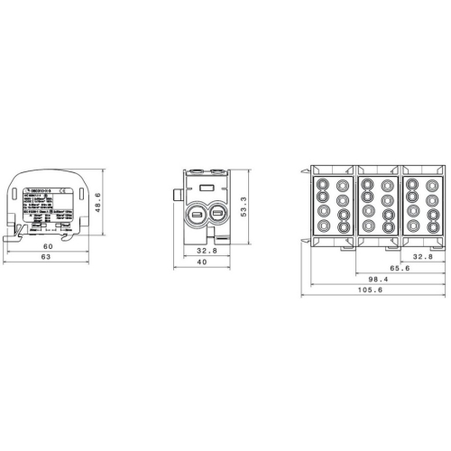 Svorkovnice rozbočovací HLAK 70//1 C L, 160A, 1pól., IP20, 1000V, 160A, 1-pól, 2x70mm2, 2x50mm2, CU, na DIN.Rozbočovací (smyčkovací) svorkovnice HLAK typ C (zaoblené) mohou být použity v rozváděčích nízkého napětí či v dalších aplikacích, kde potřebujeme připojit vstupní kabel a kabel(y) výstup ní (smyčkovací) a zároveň připojit k napájení přístroje osazeného uvnitř rozváděče. Robustní provedení plastového pouzdra v kombinaci s mosaznou svorkou splňují nejpřísnější standardy. Svorky jsou určeny pro montáž na nosnou lištu 35 mm (DIN lištu) a jsou řaditelné do sebe (a to platí i pro kombinaci HLAK 25 s HLAK 35). Vodiče se do svorek po odizolování připevňují pomocí šroubového spojení. Šroub dosedá přímo na vodič, proto je nutné jemně slaněné vodiče opatřit dutinkou. Dutinka ale zvětší průřez vodiče a proto je nutné připojovat slaněné vodiče o řád menší než uvedené průřezy. U pevných vodičů toto není nutné.Hlavní přednosti:• montáž na nosnou lištu• jmenovité napětí 1000 V AC/DC• menší vestavná šířka oproti svorkám• barevné odlišení fází (hnědá, černá, šedá) a nulových a ochranných kontaktů (modrá, zelená)• krytí IP20 – ochrana před nebezpečným dotykem živých částí• vhodné pro měděné vodiče• řaditelné do sebe