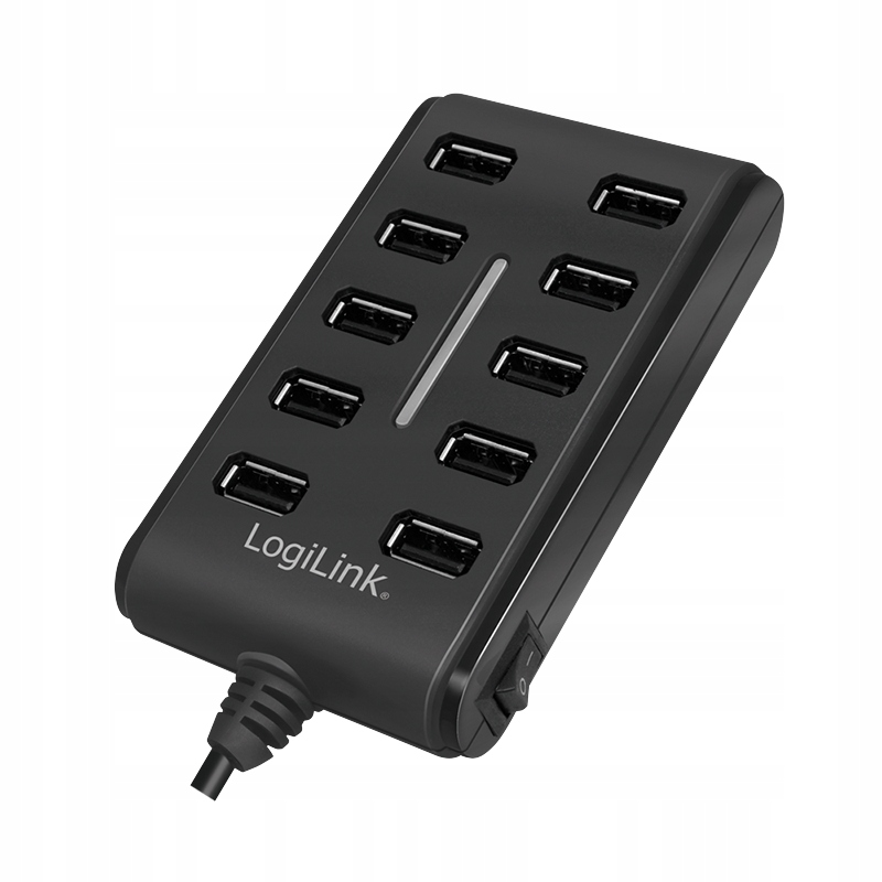 USB 2.0 10-portový hub LogiLink je praktický rozbočovač, který umožňuje rozšířit jeden USB port až o 10 dalších portů. Podporuje maximální přenosovou rychlost 480 Mb/s, pracuje ve standardu Plug & Play a nevyžaduje instalaci ovladačů. Vestavěný spínač ON/OFF umožňuje snadné odpojení všech zařízení najednou a přiložený napájecí zdroj 5V/3,5A zaručuje stabilní provoz i při plném zatížení.