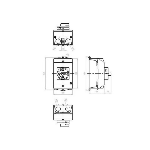 Hlavní spínač/vypínač podle IEC/EN 60947-3, 690V/32A, stupeň krytí vpředu IP65, rukojeť červená s blokovacím věncem žlutým, uzamykatelný v nulové poloze 3 visacími zámky, konstrukce zátěžových vypínačů P1 je velmi kompaktní a robustní. Ruční pohon působí na kontakty v přímém spojení. Při vypnutí se kontakty nuceně otevřou. Konstrukční formy všeobecně: Skříňky pro povrchovou montáž z izolačního materiálu, montáž, centrální upevnění, základní montáž, montáž do rozváděče IVS