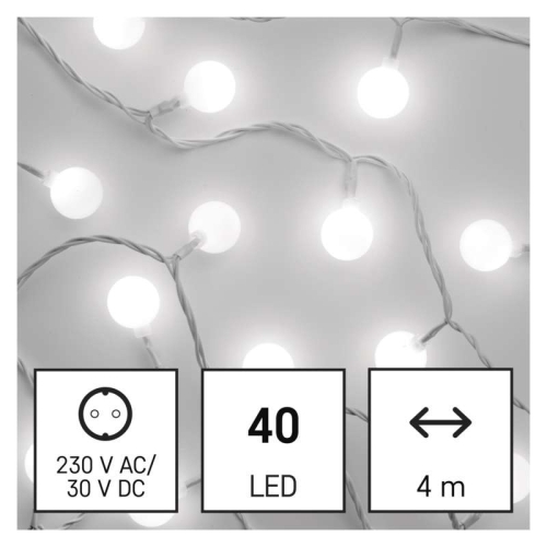800 KčVánoční osvětlení EMOS D5AC01 ZY2022T 40LED řetěz 4m velké kuličky studená bílá s časovačem