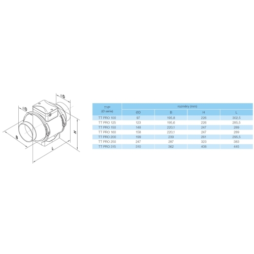 Potrubní ventilátor VENTS TT PRO 100 – model s kuličkovými ložisky.Potrubní axiální plastový ventilátor Vents TT PRO je určen k odsávání nebo přívodu vzduchu v bytových a nebytových prostorách jako jsou koupelny, kuchyně, restaurace, obchody, kanceláře a podobně. Vzhledem ke svým technickým parametrům lze ventilátor připojit k delšímu vzduchotechnickému potrubí s vyšší tlakovou ztrátou. Díky kvalitnímu plastovému materiálu jsou ventilátory tiché a ideální na provoz v prostorách s vyšší vlhkostí. Speciálně navržená konstrukce ventilátoru umožňuje jeho jednoduchou montáž a čištění. Ventilátor má motor se dvěma vinutími, což umožňuje přepínání mezi dvěma rychlostmi. Ventilátor s označením „T“ má zabudovaný časovač (T-Timer).