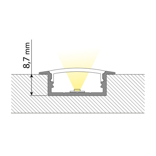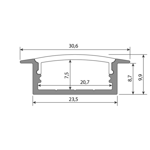 Vestavný hliníkový profil pro LED pásky, rozměry průřezu cca 30×10 mm. Součástí je matný difuzor, který lze do profilu nacvaknout. Tento profil je určen pro krytí a chlazení LED pásků do šíře 20 mm, případně dvou LED pásků do šíře 10mm. Upevnění k podkladu lze provést pomocí vrutů, lepidel. K profilu lze zakoupit koncovky.