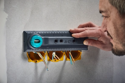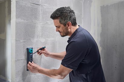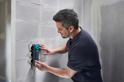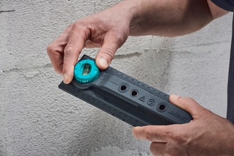 Vyznačení, vyrovnání a vrtací šablona pro instalaci vypínačů a zásuvek. Vrtací souprava „Electrics“ byla vyvinuta speciálně pro rychlou a bezchybnou instalaci elektroinstalačních krabic a souvisejících vložek do cihlových zdí. Volitelně jej lze použít také pro instalace do sádrokartonových desek. Díky integrované milimetrové stupnici můžete rychle a přesně určit správnou instalační vzdálenost od okrajů pláště budovy. Vrtací souprava „Electrics“ má na všech stranách označení 71 mm. Díky tomu lze snadno opsat správné instalační vzdálenosti mezi dvěma instalačními krabicemi. Analogické značky jsou k dispozici také pro vzdálenosti 91 mm, které jsou nutné mezi zásuvkami a televizními/síťovými zásuvkami. Díky vodováze otočné o 90° lze šablonu spolehlivě vyrovnat ve svislém i vodorovném směru pro přesné vyznačení polohy vrtání. Později vám vrtací šablona „Electrics“ pomůže také se srovnáním a přesným umístěním instalačních krabic a vložek. Vrtací souprava „Electrics“ vám ušetří spoustu času při bodovém vrtání. Stačí si pouze označit místo, kde se má vyvrtat první otvor. Jakmile to uděláte, můžete vysunout kolík na zadní straně a zasunout jej do otvoru. Tím spolehlivě umístíte vrtací šablonu. Následně pomocí vrtáku Ø 8 mm jednoduše provrtejte vodicí pouzdra vrtáku ve vzdálenosti 71 nebo 91 mm. Můžete tak zhotovit vedené, svislé vrty, aniž byste museli trávit čas značením a měřením. Vyobrazený návod vás provede jednotlivými kroky pro bezpečnou a snadnou instalaci instalačních krabic a vložek. Díky robustnímu provedení z kovu a plastu vám bude tento nepostradatelný a spolehlivý pomocník pro úhledné instalace vypínačů a zásuvek stát po boku při mnoha instalačních projektech.