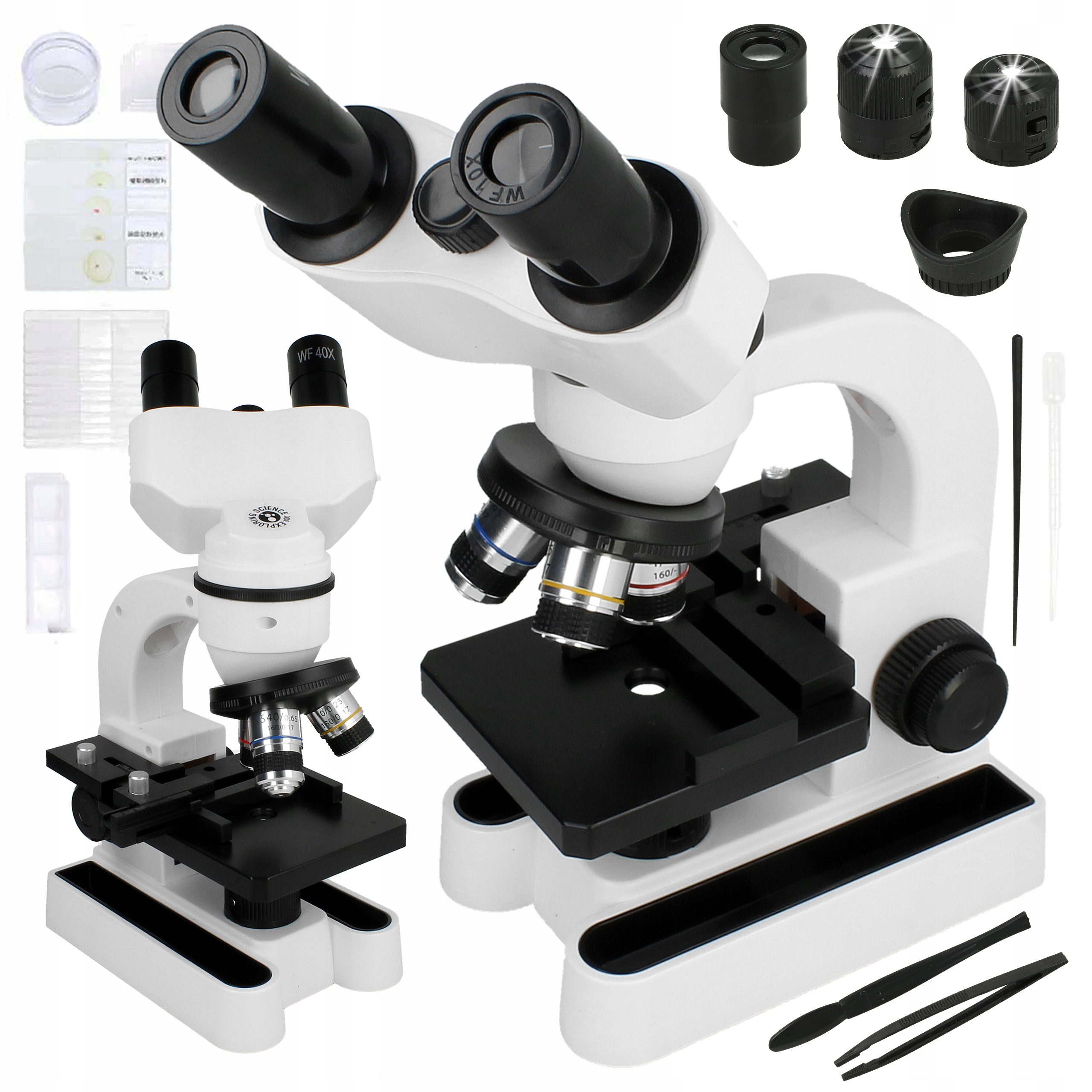 OPTICKÝ MIKROSKOP ZOOM 1600 X LABORATORNÍ SADA 3 OBJEKTIVŮ + AKCESORIA