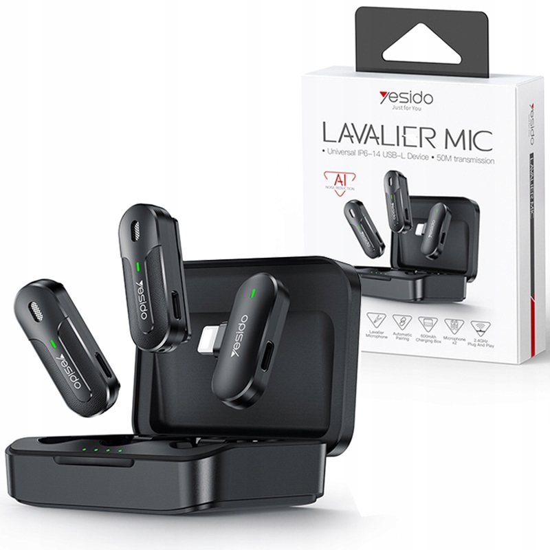 Yesido 2x Bezdrátový kravatový mikrofon pro iPhone/iPad Lightning s potlačením šumu AI