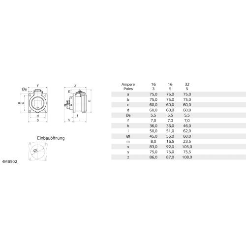 Zásuvka vestavná přímá INNOLINQ QC 32A 5p (3p+N+PE) 400V (200/346 – 240/415V~) 6 h IP54, Frekvence: 50/60Hz, Rozlišovací barva: červená RAL 3000, Materiál pouzdra/kontaktů: nosič kontaktů je vyroben z tepelně vysoce odolného materiálu, kontakty jsou z mosazi, Maximální průřez vodiče: 10,0 mm2, Materiál pouzdra: Polyamid, Technologie připojení: bezšroubové pružinové svorky s kontakty KONTEX-ULTRA, Barva součástí: víčko šedá RAL 7035, límec červená RAL 3000, Výška: 105 mm, Šířka: 75,5 mm, Hloubka: 108 mm, Rozměr příruby: svisle 75 mm, vodorovně 75 mm, Rozteč montážních otvorů: vodorovně 60 mm, svisle 60 mm, Další technické parametry: tento výrobek neobsahuje olovo. QC – bezšroubové připojení vodičů QUICK-CONNECT je ověřený, trvanlivý, bezpečný a zcela bezúdržbový systém odolný proti nárazům, vibracím a výkyvům teplot. QUICK-CONNECT s optimálně nastaveným přítlakem svorky na připojovaný vodič zcela eliminuje nedostatky šroubových spojení (možnost přetažení, nebo nedotažení šroubků, slaněné vodiče není třeba ukončovat dutinkami).